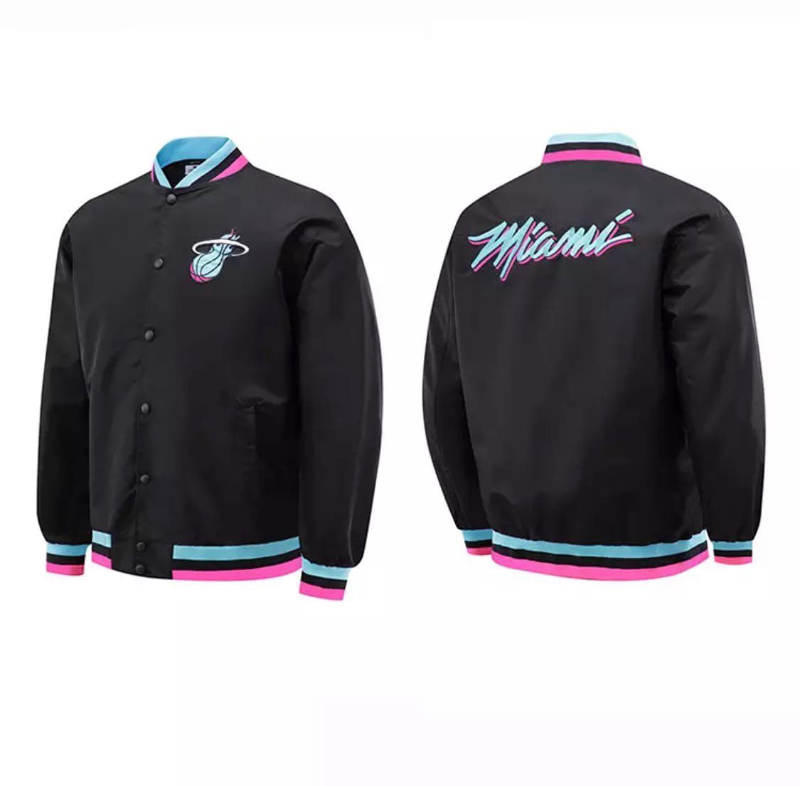 Этот черный бомбер Nike NBA Miami Heat — идеальное воплощение баскетбольной классики и агрессивного стиля «Майами». Глубокий черный цвет основы служит безупречным фоном для ярких акцентов, создавая строгий, но в то же время дерзкий образ, который одинаково уместен и на трибунах арены, и на улицах ночного города.